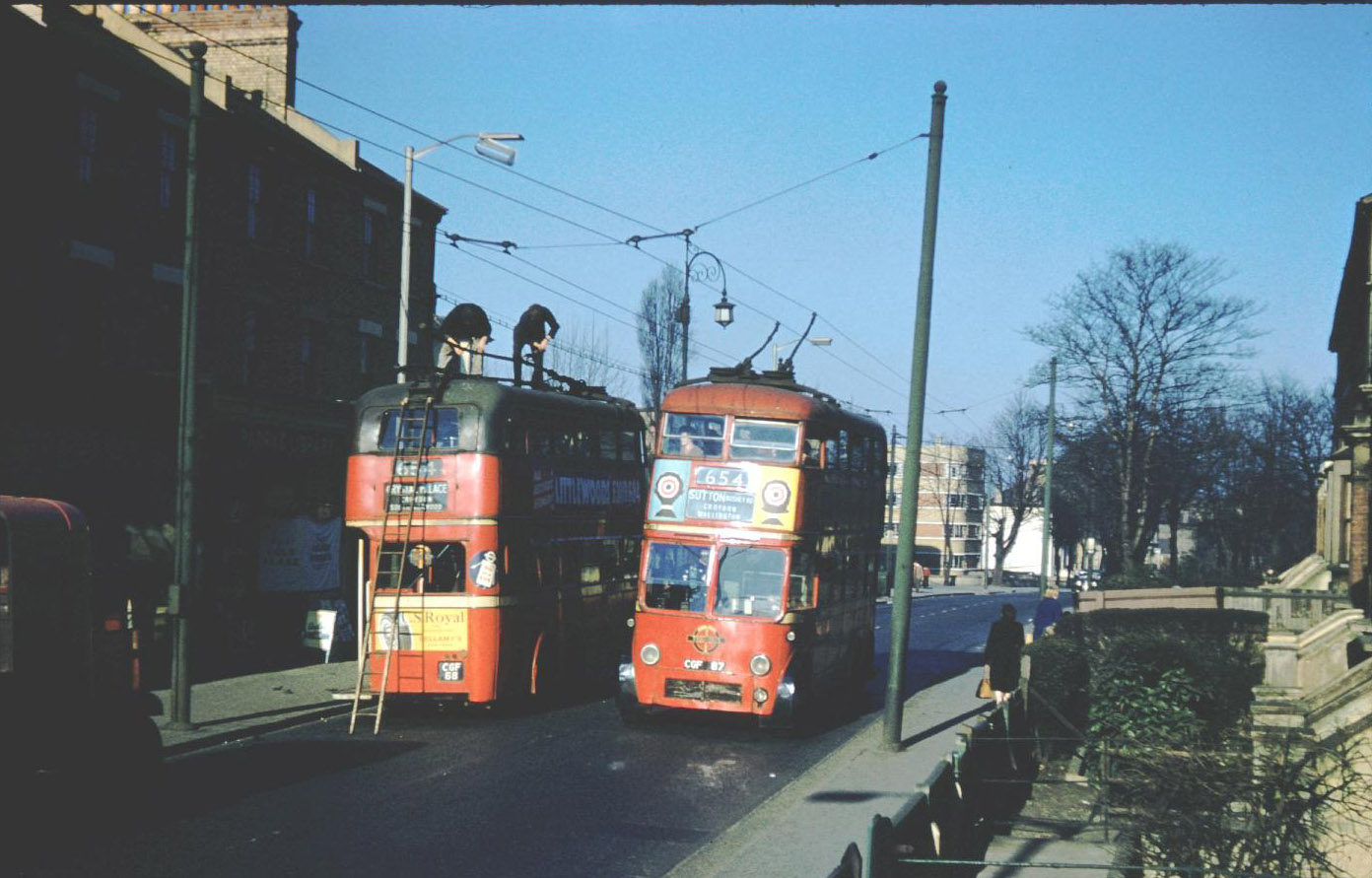 The trolleybus had rushed under Selby Road railway bridge and the poles de-wired, flailed about and hit the new lighting pole seen