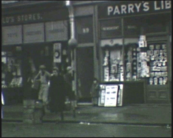 The picture to the left [#P1] is a clip from a home cine film dated 1949 which shows the two shops, and, incidentally, the Belisha Beacon of a