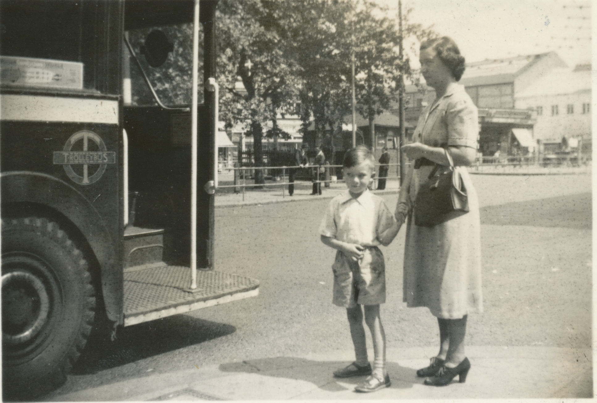My web search was an attempt to identify the location of the picture to the right [#P2], dated 1951, which shows me and my mother standing by a trolleybus;