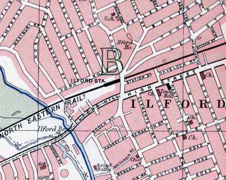 roughly opposite Ilford Station. However, I've now seen here that the Ilford Hippodrome stood on that site.